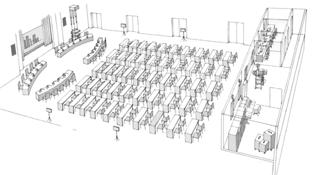 · 통역부스는 음의 공진현상을 방지하기 위하여 3면의 크기가 다르게 할 것.