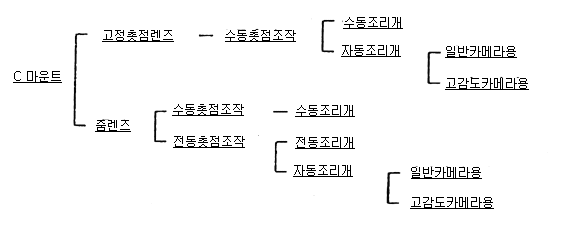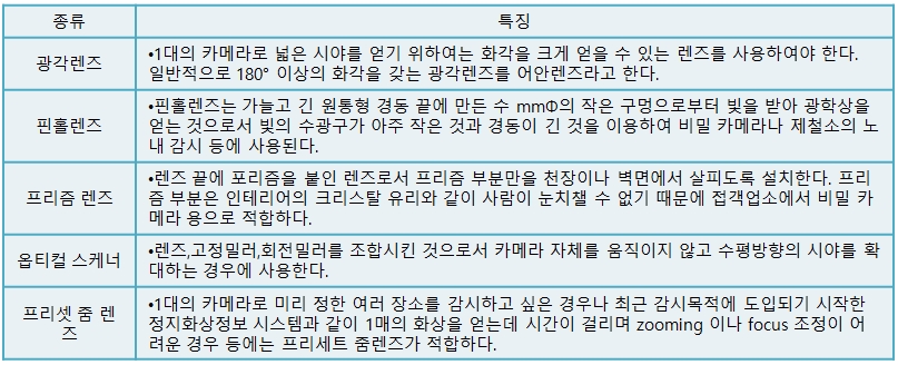 최근 CCTV 카메라 용으로서 많은 종류의 렌즈가 시판되고 있으나 기능이나 조작면에서 분류하면 다음과 같다.