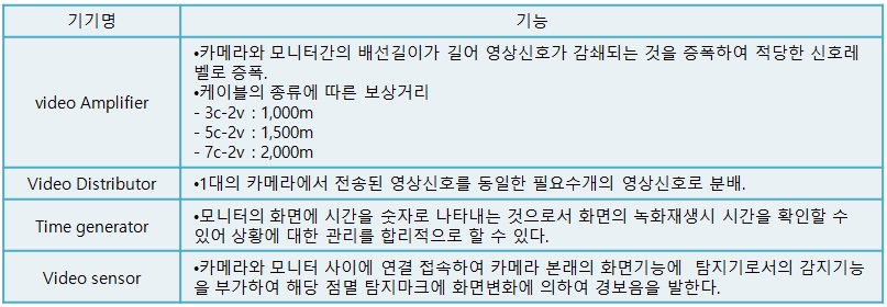 피사체를 어떻게 정확하고 확실하게 촬영할 것인가 하는 관점에서 부속설비를 선정하고 또 카메라를 설치한 환경조건으로부터 어떻게 보호할 것인가 하는 배려가 필요하며 이것이 CCTV시스템의 양,불을 결정하는 중요한 요소가 된다.