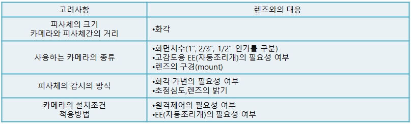 카메라 선정시에는 피사체에 대한 정보와 피사체가 가진 정보를 고려하여야 한다.