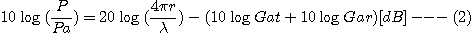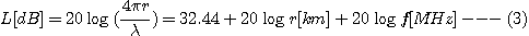 자유공간의(기본) 전파손실 L[dB]는 식(2)에서 Gat = Gar = 1로 놓고