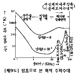 우주잡음은 주파수 낮으면 증가하고 하한의 주파수를 결정하는 요소로된다. 대기잡음 중에서 공전은 낮은 주파수이고, 대기의 기체분자나 수증기 등의 흡수에 열잡음이나 대지의 열잡음 등은 높은 주 스머층의 주파수 문제로 된다(제9도) 단, 높은 주파수에서의 상한을 결정하는 요소는 수신기의 내부 잡음인 경우가 많다. 지구국의 수신기에 내부잡음이 적은 메이저나 또는 잡음이 적고 대역폭이 넓은 앵각 파라메트릭 증폭기가 사용되고 있는 것은 이 때문이다.