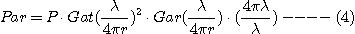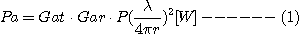자유공간에서의 유효 수신전력 Pa[W]는 다음 식으로 계산한다.