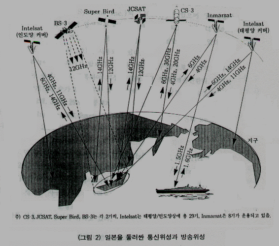 일본의 CS-3, Super Bird, JCSAT는 각각 12개, 32개, 29개의 중계기를 탑재하고 있다.
