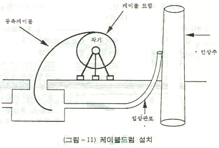 케이블 드럼의 설치장소는 인수공측에서 그림 11과 같이 케이블이 원활하게 들어갈 수 있는 위치에 설치한다.