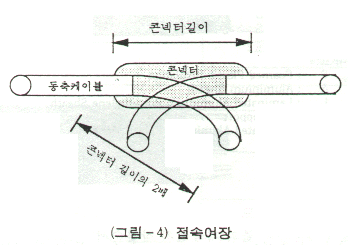 케이블간의 접속은 FT형 콘넥타를 이용하여 접속하며, 접속여장은 그림 4와 같이 콘넥터 길이의 2배로 한다.