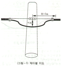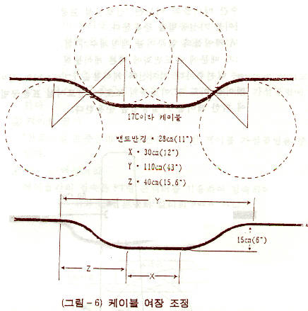 - 곡형 여장은 관구에서 케이블이 정상위치로 곡형된 상태를 가상하여 로프 등으로 측정한다.