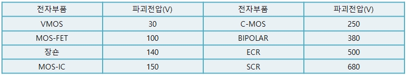 <표> 전자부품의 정전파괴전압