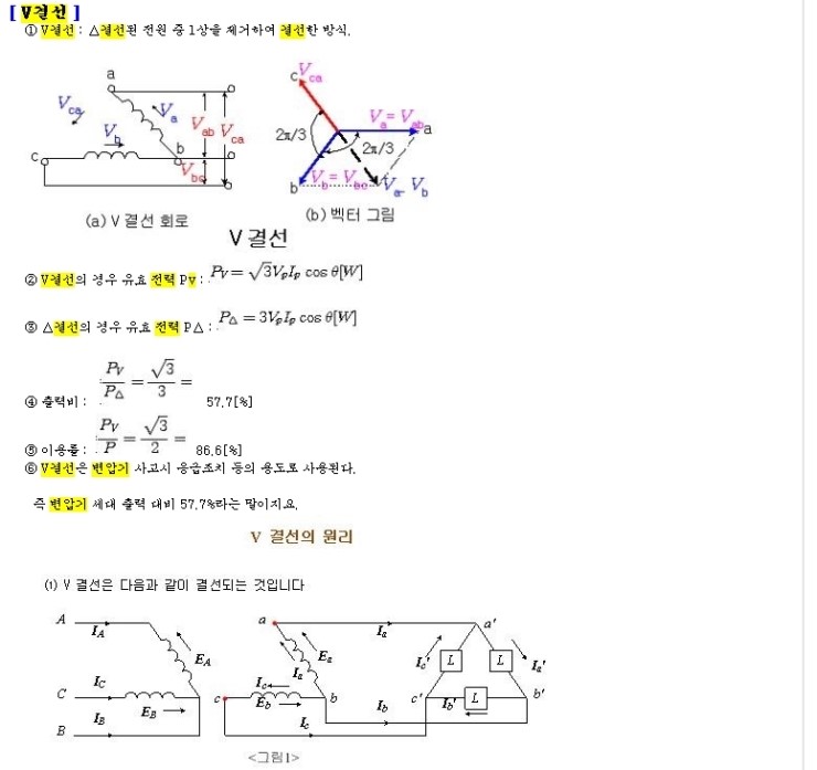 또한 변압기중 1대가 고장나면 V형 결선(일명 V결선)으로 교체사용 가능하나 효율이 80%로 떨어집니다.