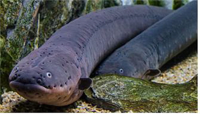 전기뱀장어도 민물고기의 일종으로 몸길이는 2m내외이며, 일반 뱀장어와 비슷하게 생겼다. 몸 후반부의 양옆구리에 2개씩의 발전조직이 있으며, 발전능력은 발전어류 중 최고로서 650~850V정도 인것도 있다.