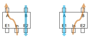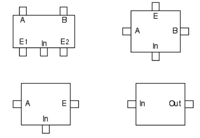 2) 4/2 valve: 2개 배기 포트(E1, E2)가 한 개(E) 로 통합