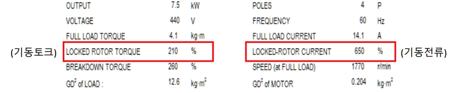 · 기동전류에 의한 발열 관점에서 전동기가 정상적으로 기동이 가능한지를 판단함.
