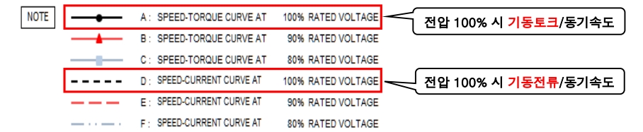 - 전동기의 특성(토크/전류), 부하율에 따른 효율/역률 추이, 기동시간 및 허용구속시간을 알 수 있습니다.