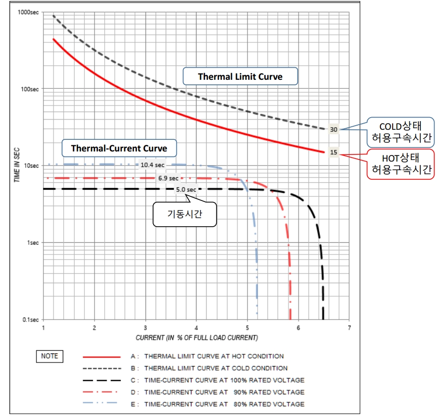 - Thermal limit Curve : 전동기가 구속인 상태에서의 허용구속시간을 의미