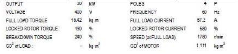 3) 고객시방서 중 2Hot 3Cold에 대한 요구사항이 있으면 부하조건을 고려한 전동기 기동시간 계산 후 열상태 기동 2회 또는 냉상태 기동 3회시 Thermal Limit Curve와 접촉되지 않는지 여부 판별이 필요하므로 부하정보(관선모멘트 및 부하와 Speed-Torque)가 있어야 계산이 산출됨.