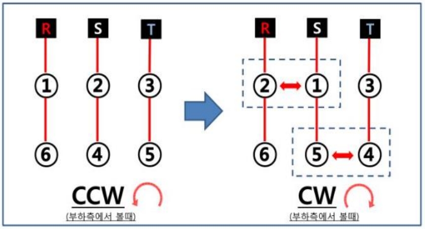① 직입에서는 CCW 상의 R↔S 만 바꾸면 되지만, Y-D 기동은 CW 그림으로 변경해야 합니다.