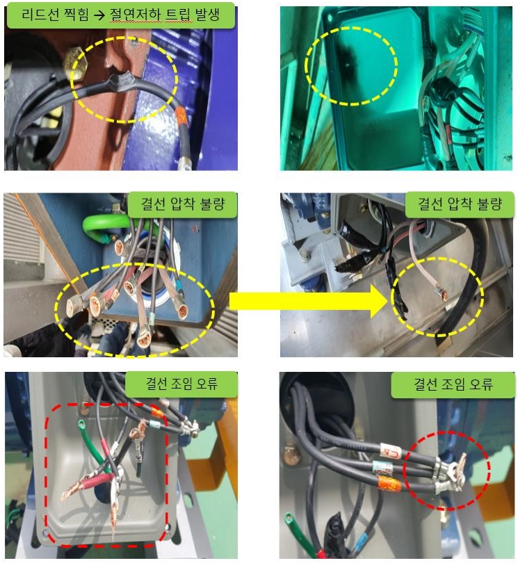 ② Y-D 기동반(판넬)에서 오는 전원선 6가닥은 전동기 리드선 6선과 각각 연결되어야 합니다.