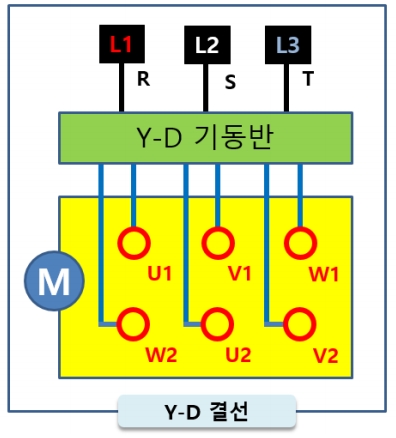 ① Y-D 기동 방식(Y결선으로 기동하여 Delta(직입)로 운전)