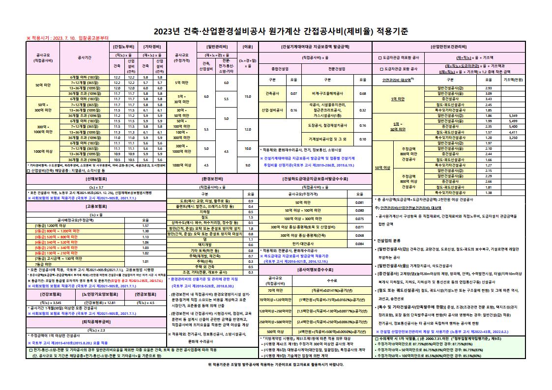 | 2023년 원가계산 간접공사비(제비율) [2023.01.02] (0) | 2023.02.18 |
