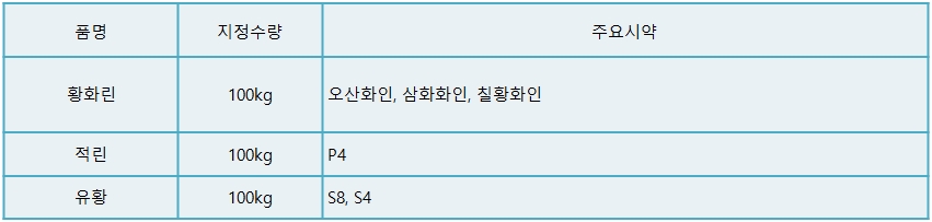 아래는 공존 할 수 없는 화학 물질을 나타내었으며, 각 연구실내 화학약품의 보관 상태와 비교하여 사고 없는 안전한 환경 조성에 참고 바랍니다.